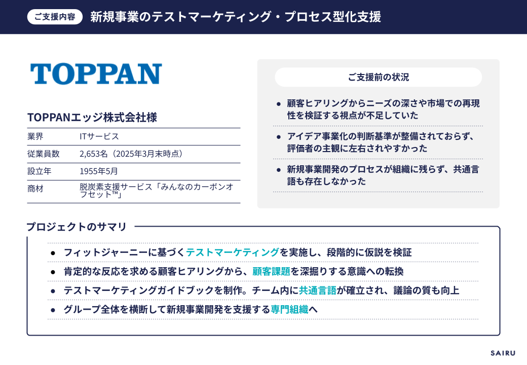 フィットジャーニーで新規事業開発を体系化。TOPPANエッジのテストマーケティングを支援