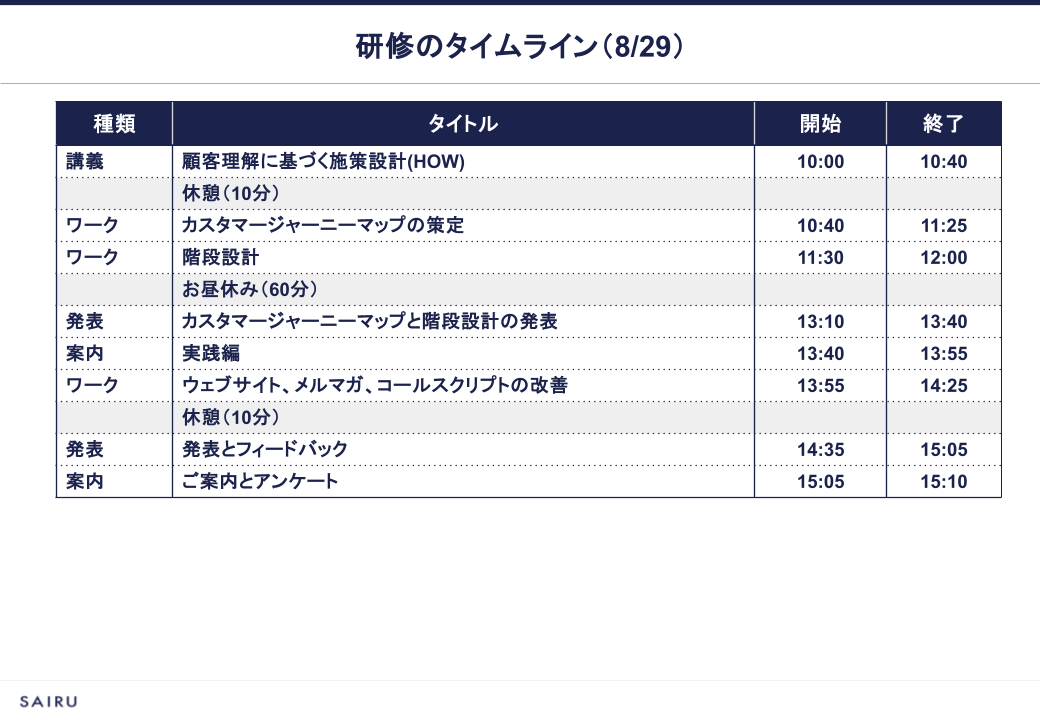 今回は、実務に生かせる「研修」としたい思いが強くありました。一般的な研修では、カスタマージャーニーなどを題材にしても、理論として学ぶだけで終わってしまうケースが多く、実際の業務に落とし込むのは難しいかと思います。