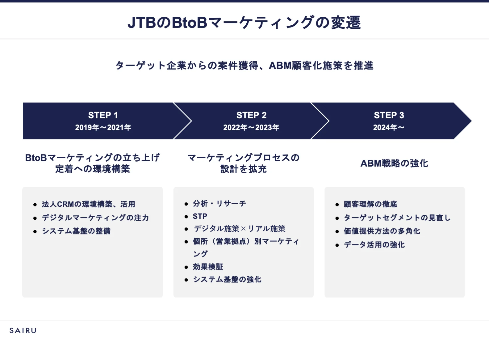 ーJTB様は2025年度の事業方針としてABMへの注力を発表しています。ビジネスソリューション事業におけるABM戦略の概要を教えてください。