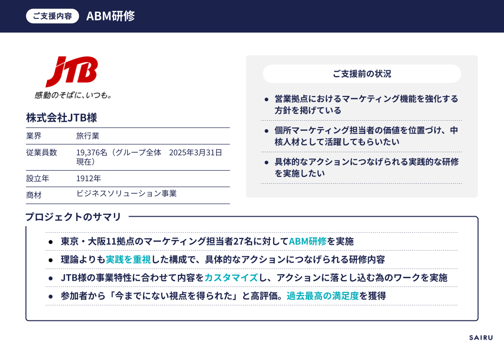 ABM研修での学びは実践的であり、JTBにとって新しい視点をもたらしたと感じています。
