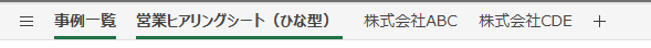 ② 営業ヒアリングシート(ひな型)を複製し、シート名を顧客の会社名に変更します。(例:株式会社ABC)