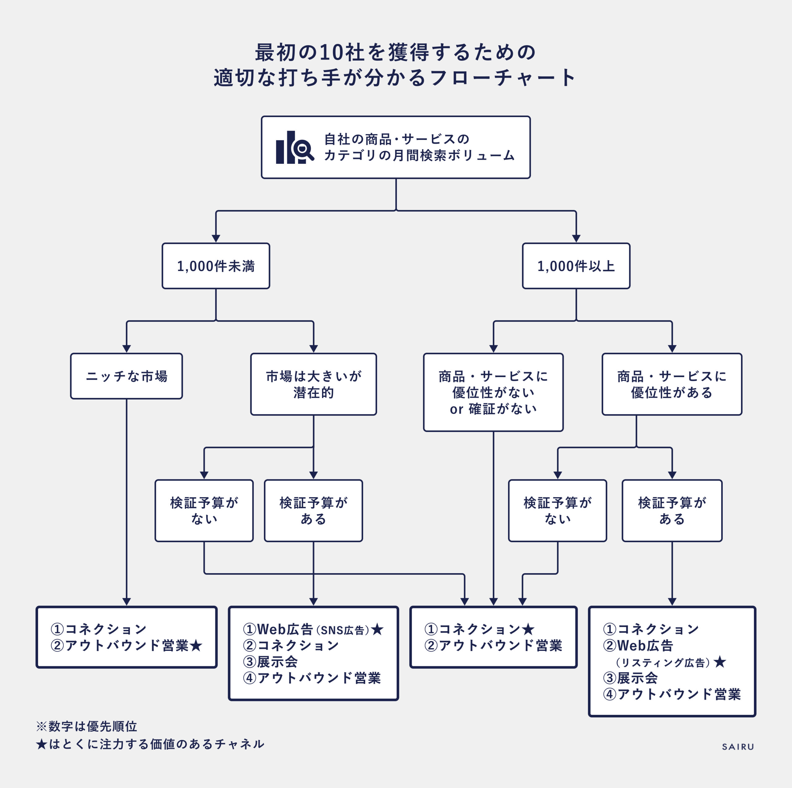 最初の10社を獲得するための適切な打ち手が分かるフローチャート