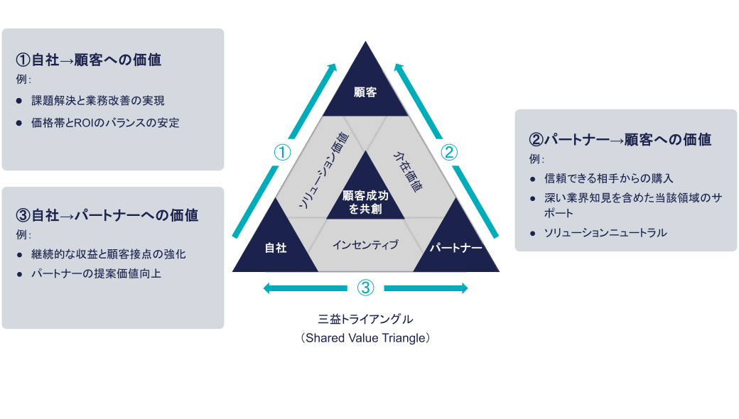 パートナービジネス特有の業界構造分析、三益トライアングル、PPF(プロダクト・パートナー・フィット) 、パートナーの営業体験デザインといった独自開発のフレームワークで支援。個人の経験則に依存しない、再現性の高いコンサルティングを提供します。