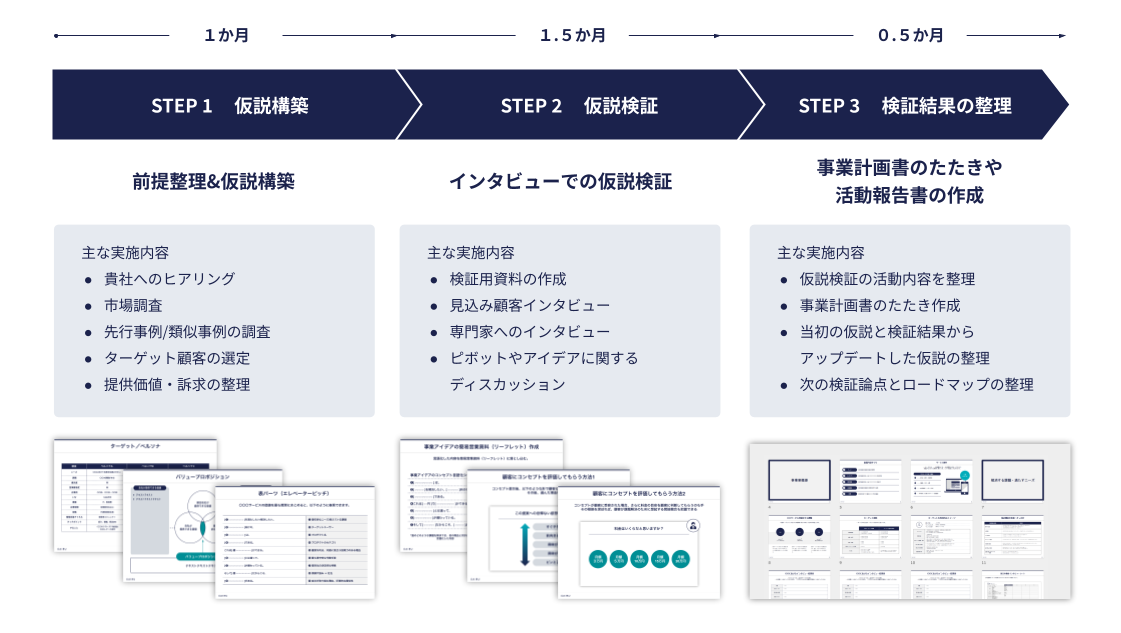 仮説検証・具体化支援では、「売れる確信」を持って事業化へ進むための仮説検証・アイデア具体化を支援します。